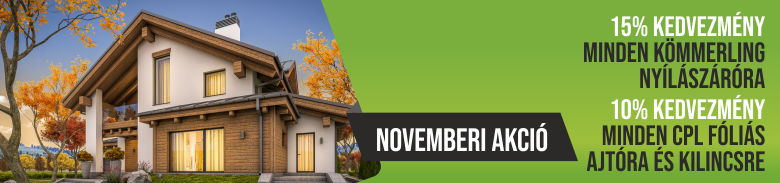 15% kedvezmény minden Kömmerling nyílászáróra 10% kedvezmény minden cpl fóliás ajtóra és kilincsre